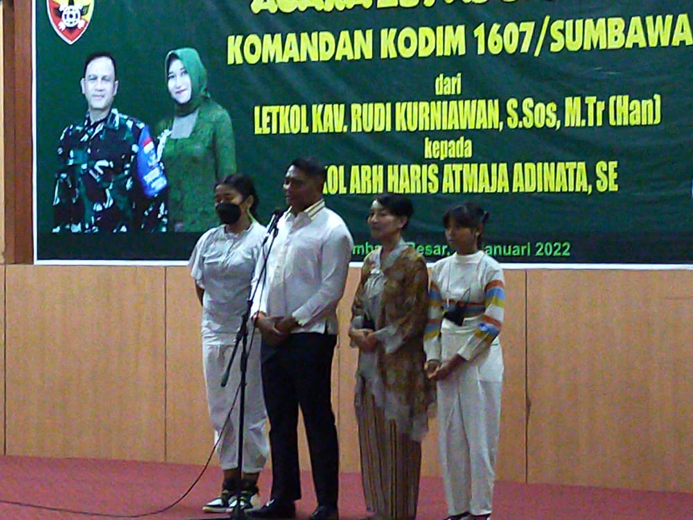 Di tempat yang sama, Pejabat Dandim 1607/Sumbawa yang baru Letkol Arh Haris Atmaja Adinata, S.E., dalam sambutannya mengatakan, “Kami mohon ijin berdinas di Kabupaten Sumbawa. Mohon agar diingatkan apabila ada hal-hal yang kurang kami ketahui agar kami bisa melanjutkan apa yang telah dilaksanakan oleh Letkol Kav Rudi Kurniawan, S.Sos., M.Tr.(Han),” ungkap Letkol Arh Haris Atmaja Adinata.