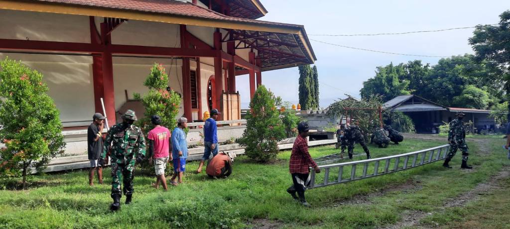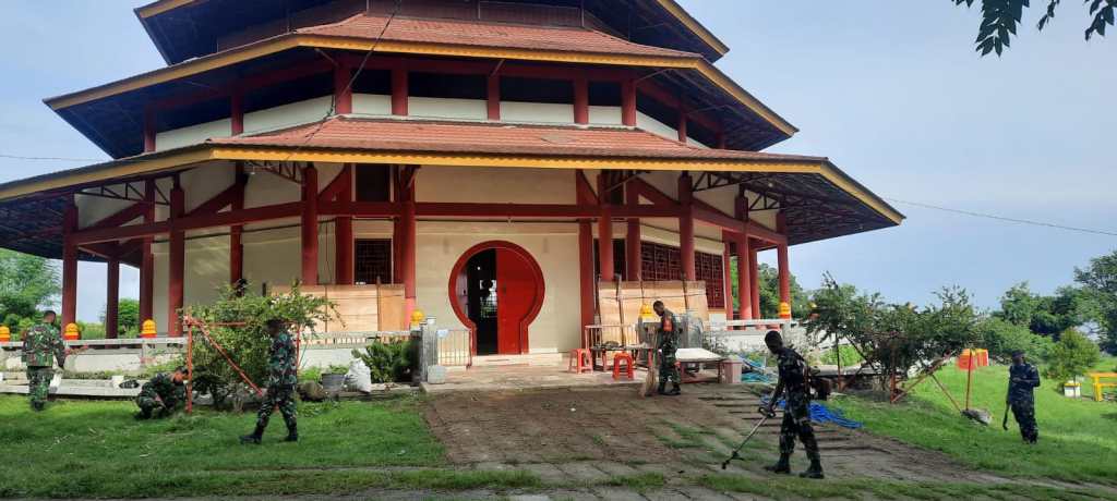 Sumbawa – Dalam rangka menyambut Tahun Baru Imlek 2022, Anggota Kodim 1607/Sumbawa bersama masyarakat gotong royong membersihkan Klenteng Vihara Labuhan Badas Kecamatan Labuhan Badas Kabupaten Sumbawa. Senin (31/01/2022).