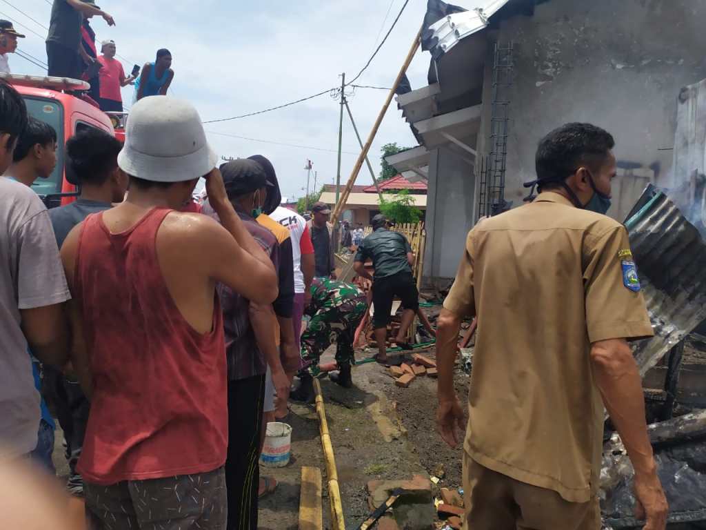 Kejadian Kebakaran yang menelan kerugian kurang lebih Rp.800.000.000., tersebut diduga karena adanya konsleting listrik yang berasal dari rumah panggung sehingga menimbulkan api.