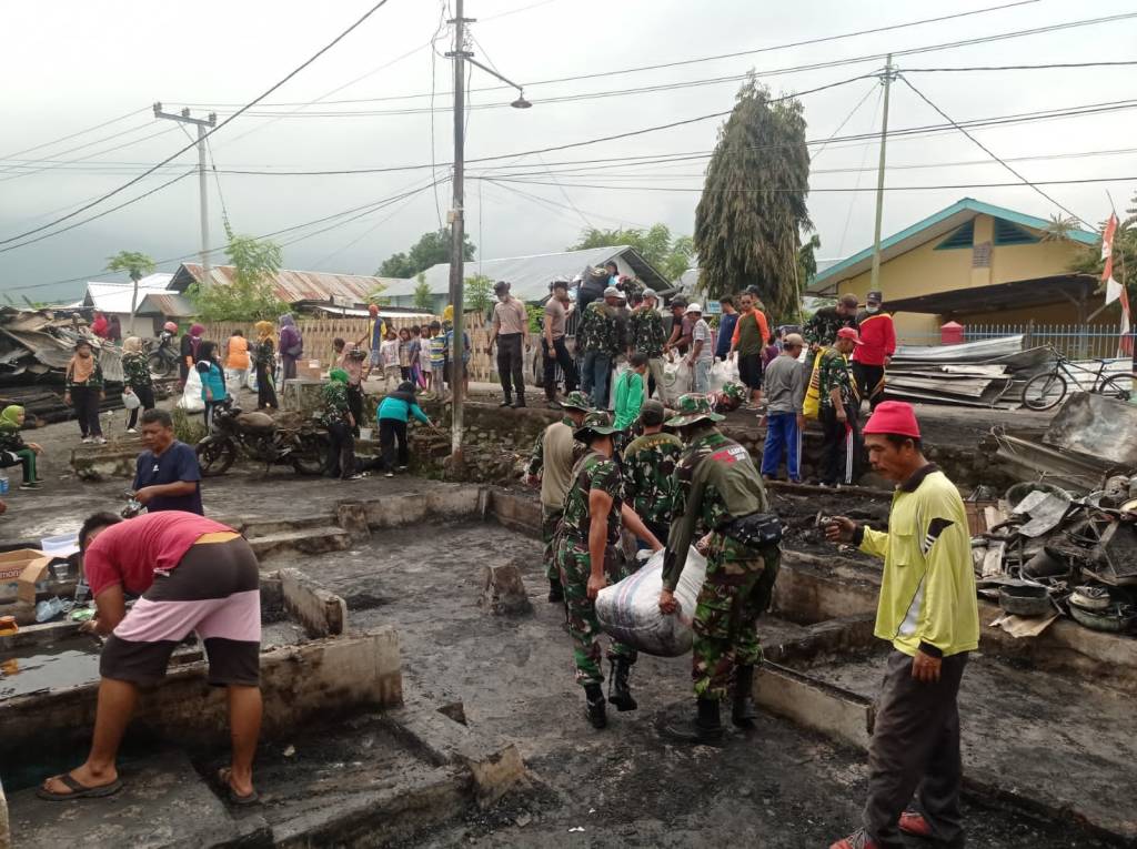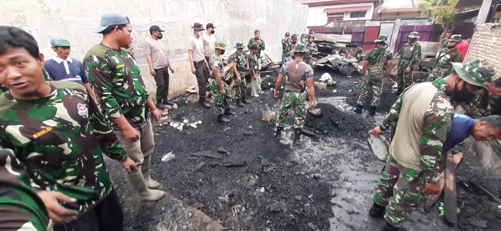 Dari pantauan, puing-puing sisa kebakaran akibat konsleting arus listrik tersebut, nampak berserakan dan mulai pagi dibersihkan oleh Anggota Koramil 1607-04/ Alas bersama warga Desa Juran Alas.