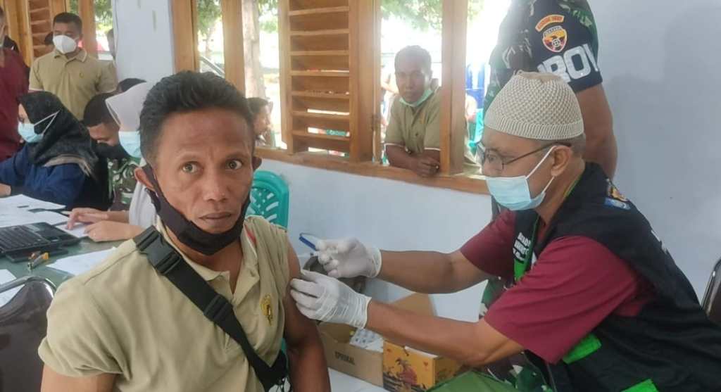 ” Dari 155 orang target kita, yang bisa divaksin yaitu 108 orang dikarenakan waktunya belum memungkinkan dan sisanya akan kami gabungkan ke KUPT setempat untuk menerima Vaksin”, Kata Kasdim.